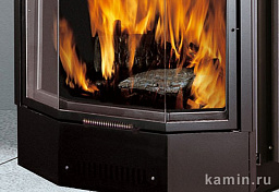 Топка изготовлена из высокотемпературной стали и футерована изнутри белоснежным огнеупорным камнем, не теряющим цвет в процессе эксплуатации камина. Стекло топочного окна имеет прямую форму и выдерживает нагрев до 800 градусов Цельсия.